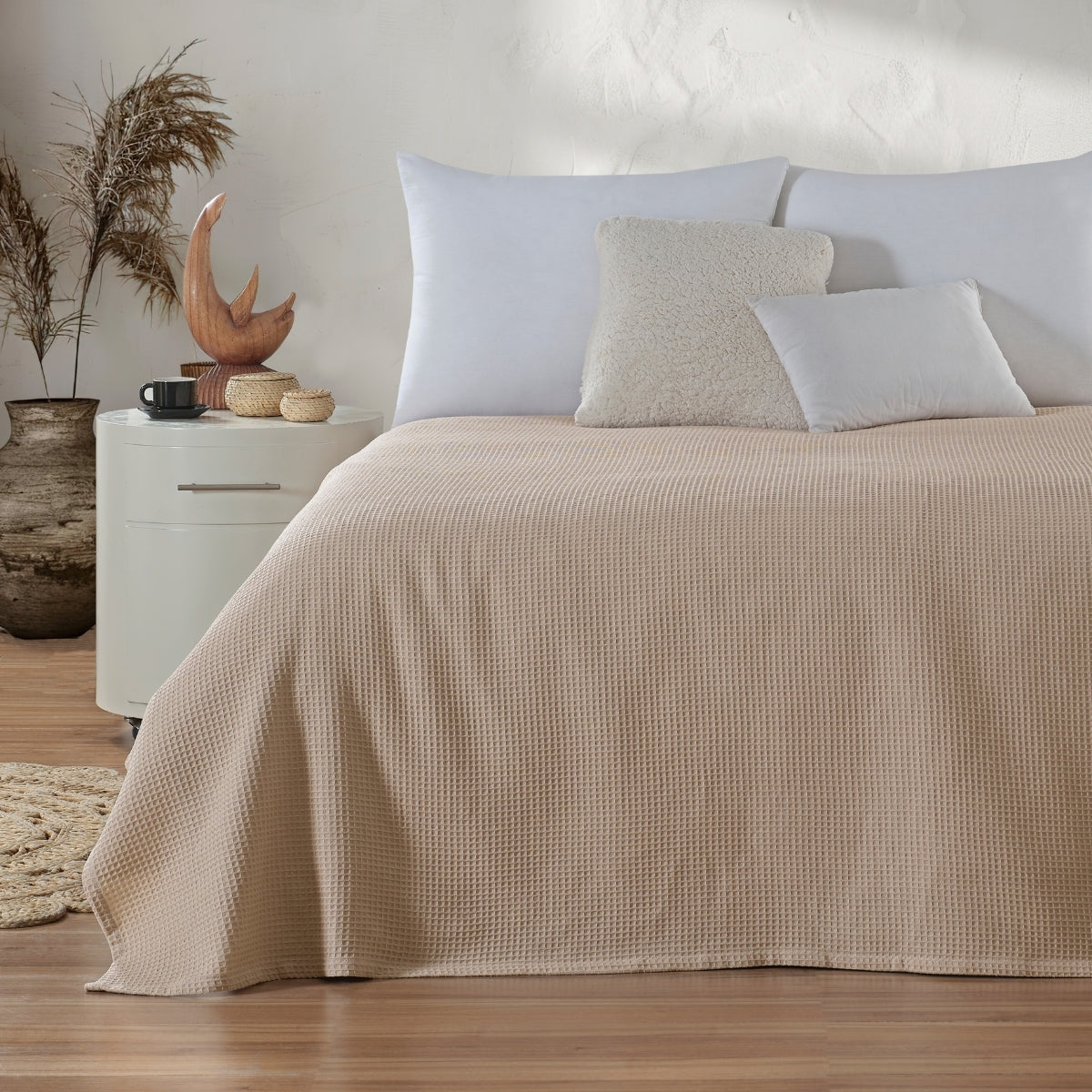 Yatak odanıza zarif ve modern bir dokunuş katmak için tasarlanan %100 Pamuk Waffle Desenli Lüks Pike, estetik görünümü ve üstün konforu bir araya getirir. Doğal pamuk dokusu sayesinde nefes alan, hafif ve yumuşak yapısıyla her gece rahat ve sağlıklı bir uyku deneyimi sunar.