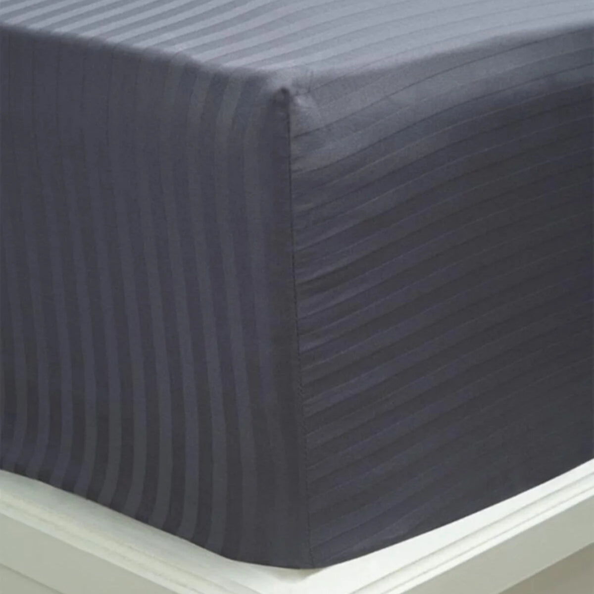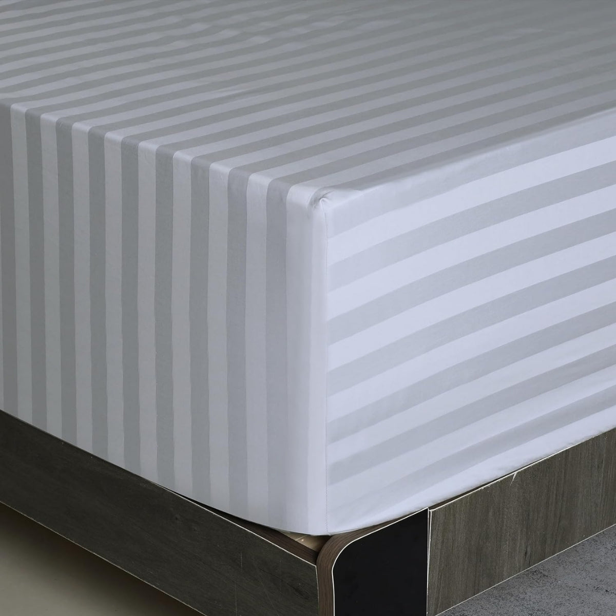 Armonia Series 82 Thread Count 100% Cotton Striped Sateen Duvet Cover Set - Double, Fitted Sheet Breathable Luxury Tight Weave