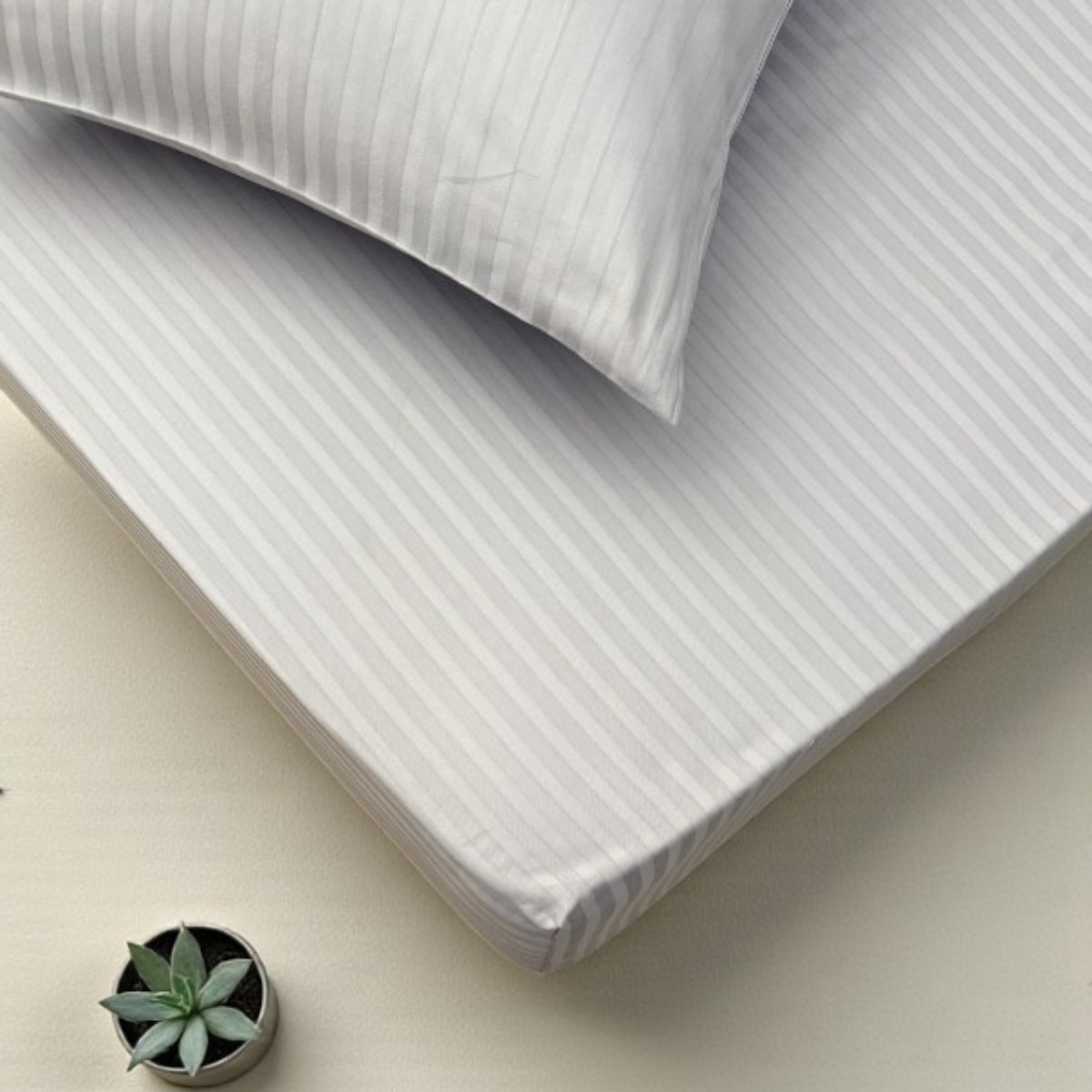 %100 pamuk saten kumaştan üretilen çizgili lastikli çarşaf takımımız, zarif parlak dokusu, nefes alabilen yapısı ve sıkı dokuması ile hem estetik hem fonksiyonel bir uyku deneyimi sunar.