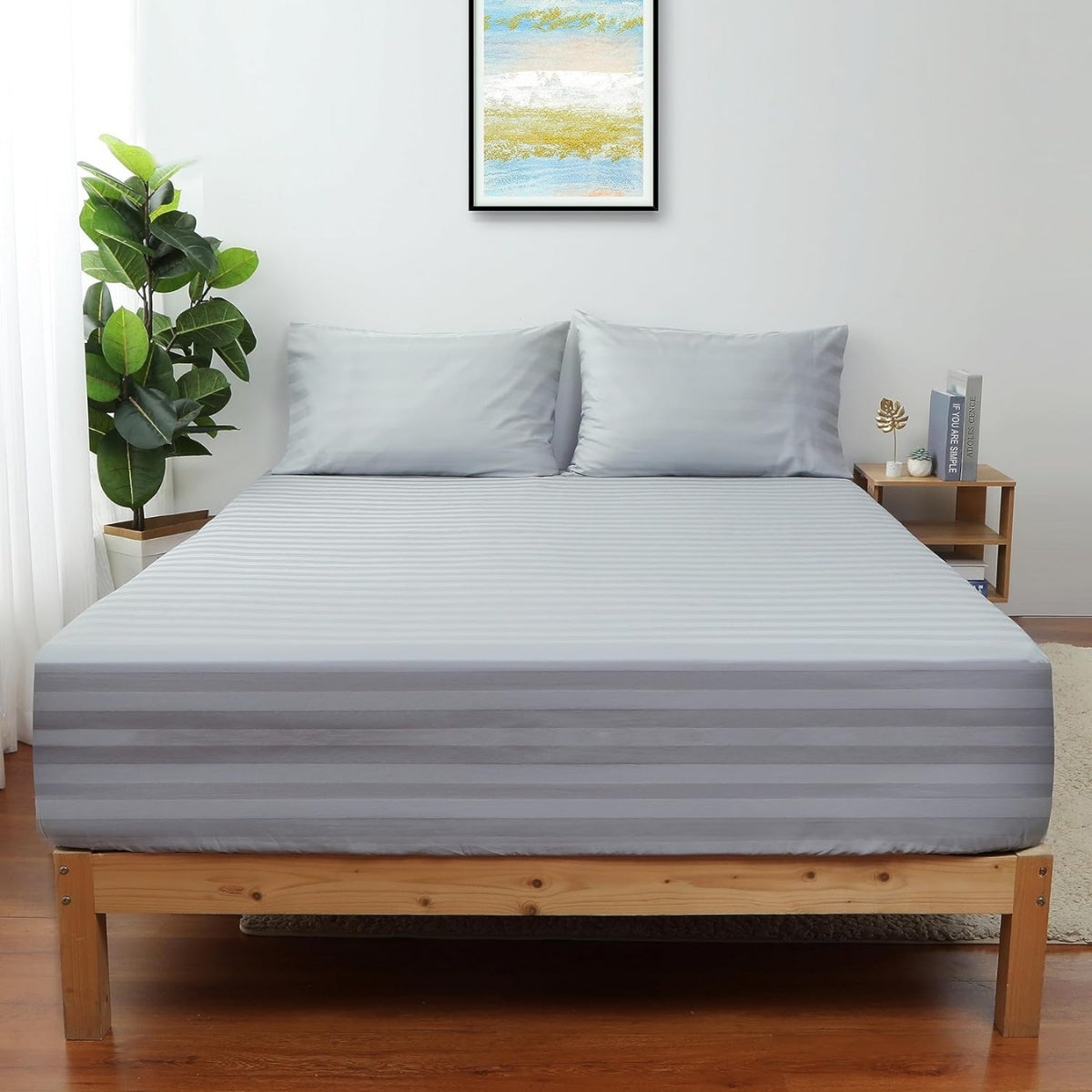 Platin Çizgili Saten Lastikli Çarşaf Takımı – Yumuşak ve Parlak Kumaş, Sadece Lastikli Model
